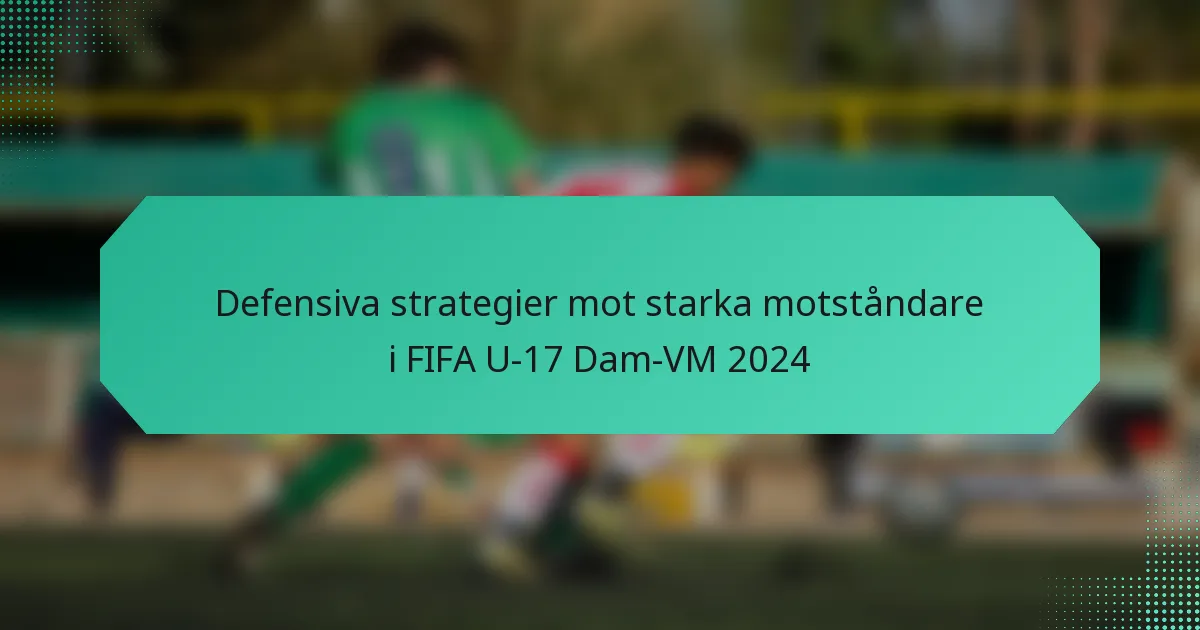 Effektiva defensiva strategier i FIFA U-17 Dam-VM 2024 fokuserar på formationer, spelpositionering och kommunikation för att motverka starka motståndare. Lag måste anpassa sina taktiker baserat på sina rivalers styrkor samtidigt som de använder pressning och motpressningstekniker för att återfå bollen.