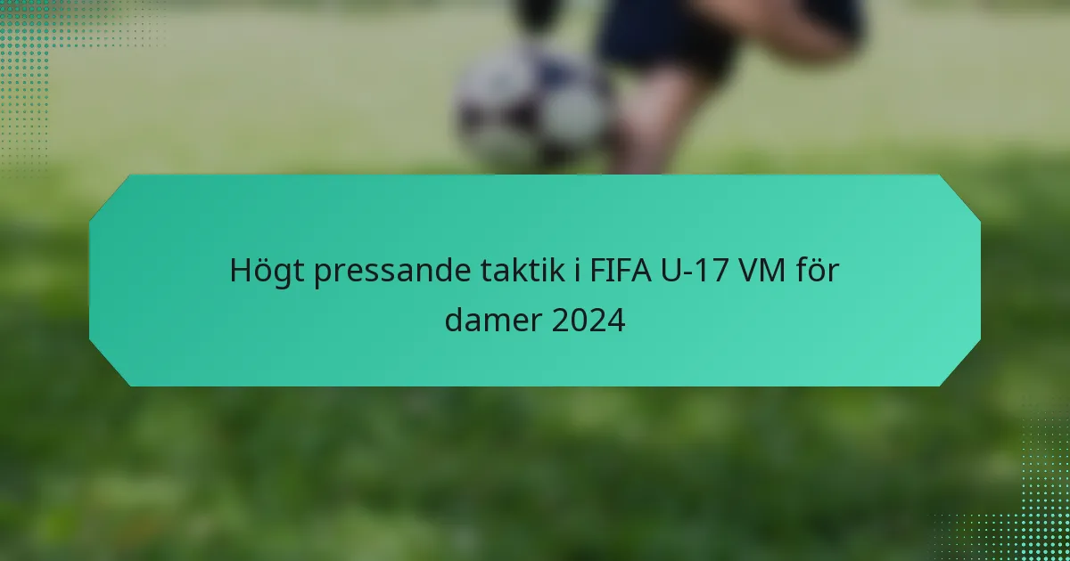 Hur tillämpas högt pressande taktik i FIFA U-17 Dam-VM 2024?