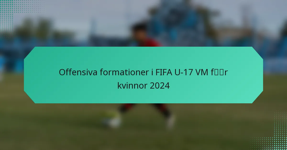 FIFA U-17 Dam-VM 2024 visar flera viktiga offensiva formationer som lag använder för att maximera sin målpotential. Dessa formationer inkluderar 4-3-3, 4-2-3-1, 3-5-2 och 5-3-2, som alla erbjuder distinkta taktiska fördelar och strategier som påverkar spelet och prestationen.