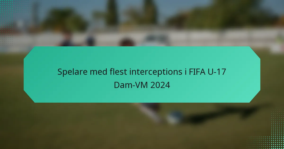 FIFA U-17 Dam-VM 2024 har visat upp flera spelare som utmärker sig i defensiva roller, särskilt när det gäller att göra interceptions. Dessa spelare har visat sin förmåga att störa motståndarens attacker och bidrar avsevärt till sina lagens defensiva strategier.