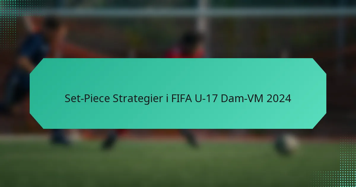 Strategier för fasta situationer är avgörande i FIFA U-17 Dam-VM 2024, eftersom de kan påverka matchresultat avsevärt. Lagen använder olika taktiker för att maximera målchanser under frisparkar, hörnor och inkast, och anpassar sina tillvägagångssätt baserat på sina spelares styrkor och de formationer de använder.